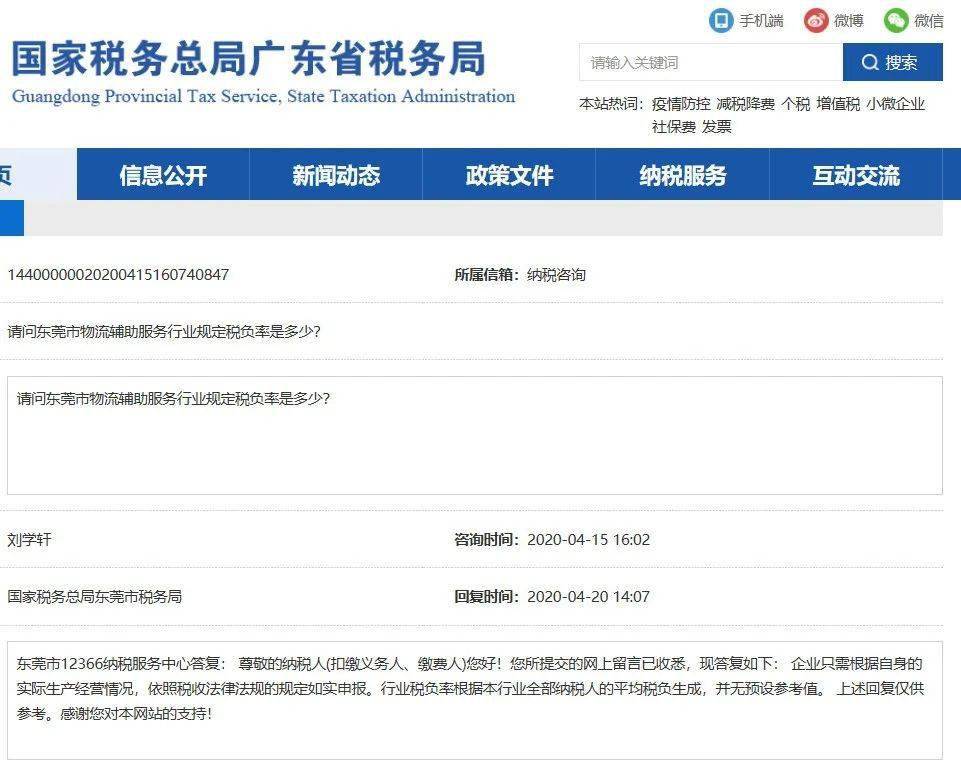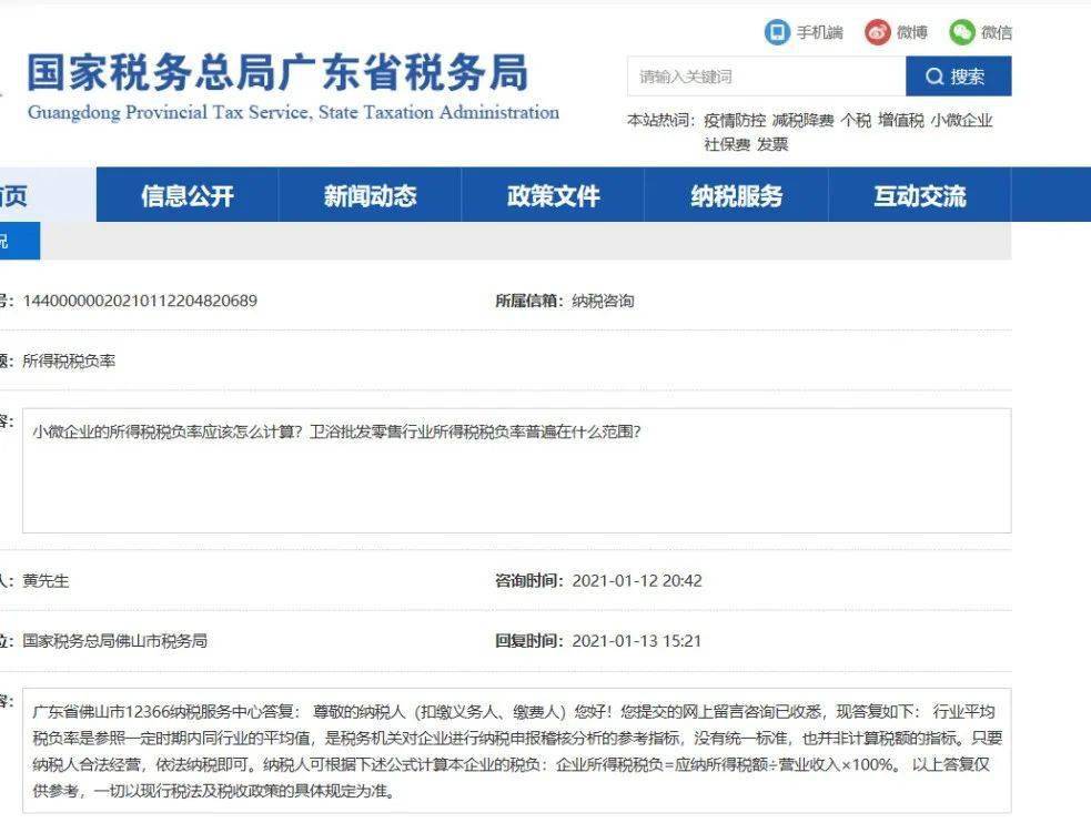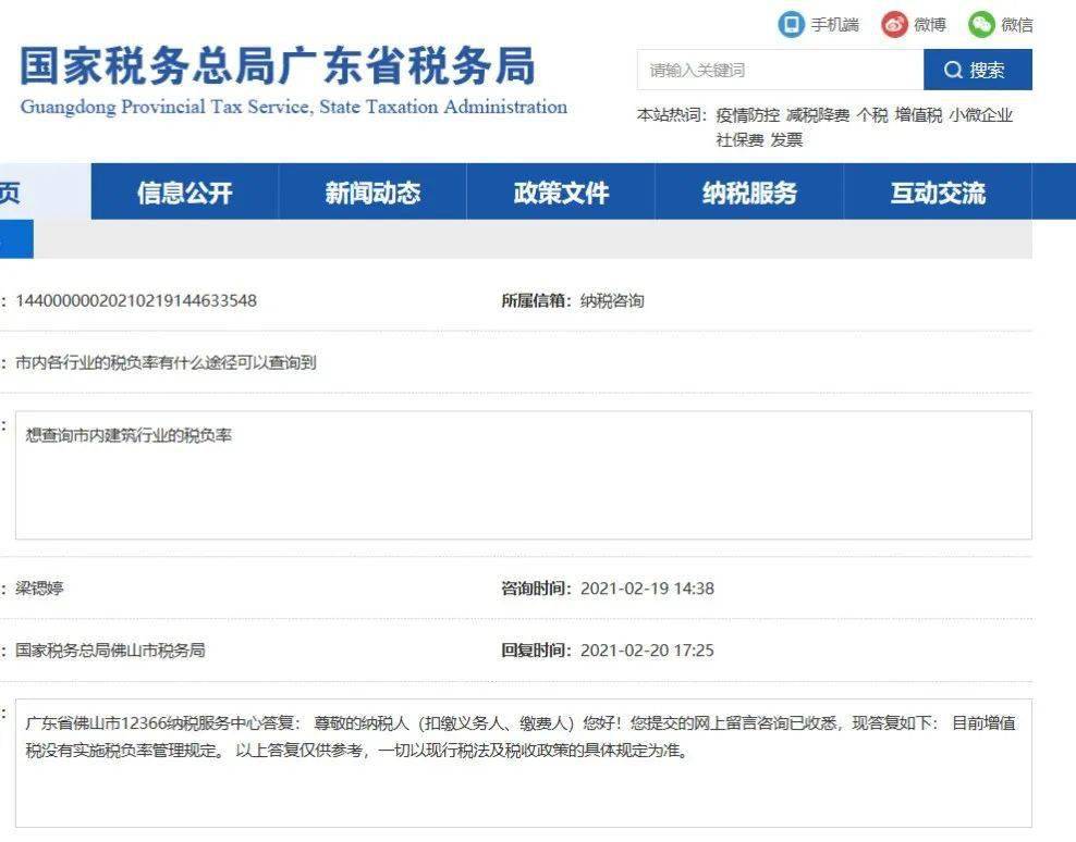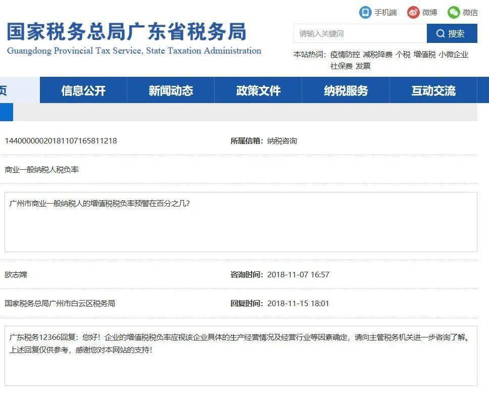 广东税务12366回复:您好!企业的增值税税负率应视该企业具体的生产经营情况及经营行业等因素确定,请向主管税务机关进一步咨询了解。