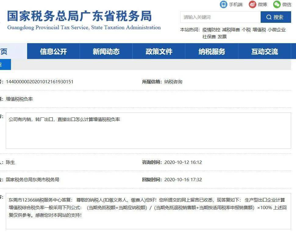 东莞市12366纳税服务中心答复:生产型出口企业计算增值税综合税负率一般都会采用下列公式:(当期免抵税额+当期应纳税额)/(当期免抵退税销售额+当期按适用税率申报销售额)×100%