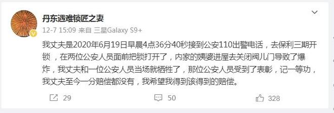 但在王艳丽看来,在这场爆炸中死亡的锁匠却无人记得。“我就觉得特别委屈,我爱人陪着他们这么多年,始终和他们在一起工作,最终就像这个人没存在一样。”王艳丽说,自己想为爱人讨一个说法,还他一个公道。